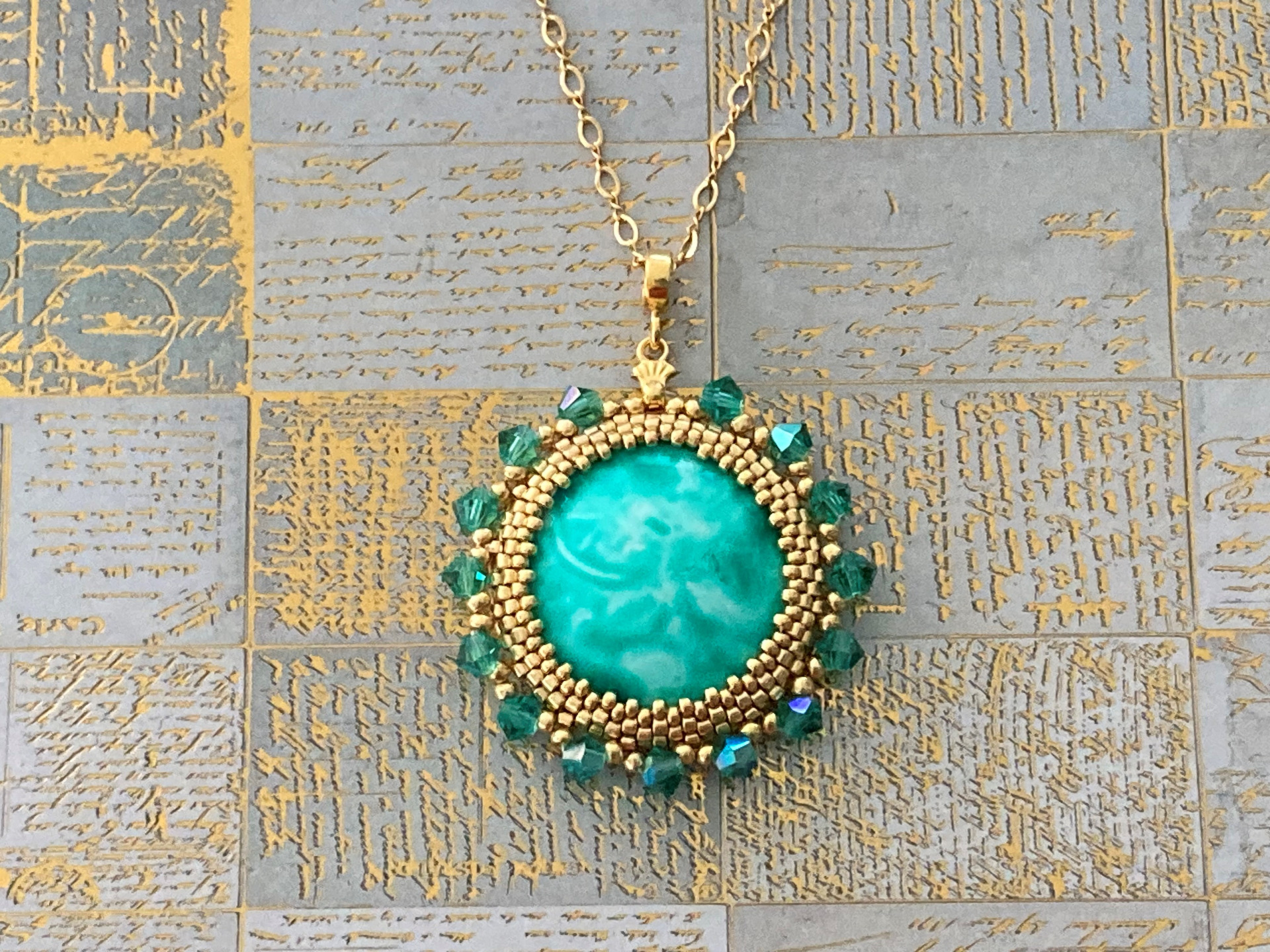 Hanger Angela met cabochon Milky Turquoise, 2,5 cm.
