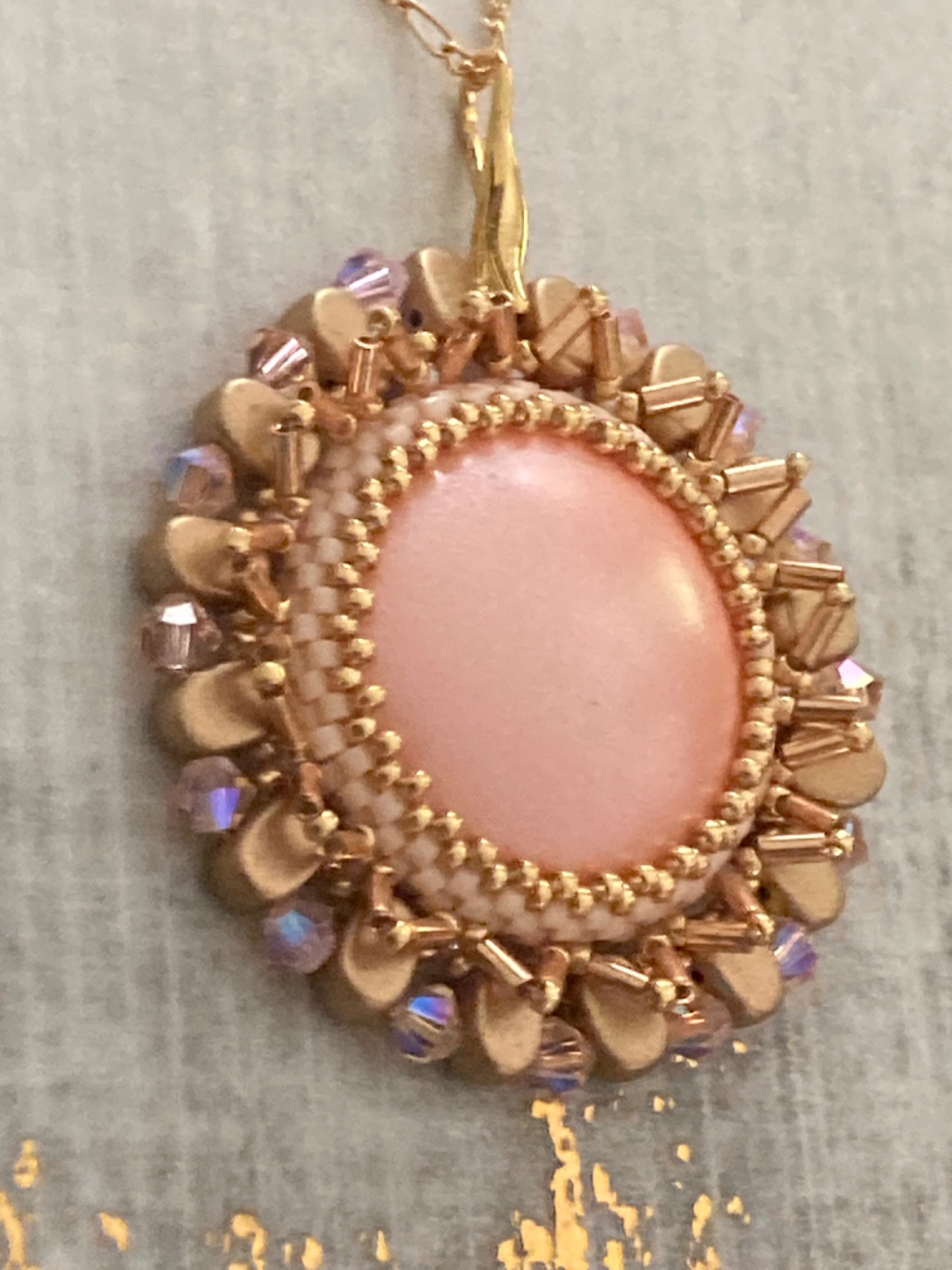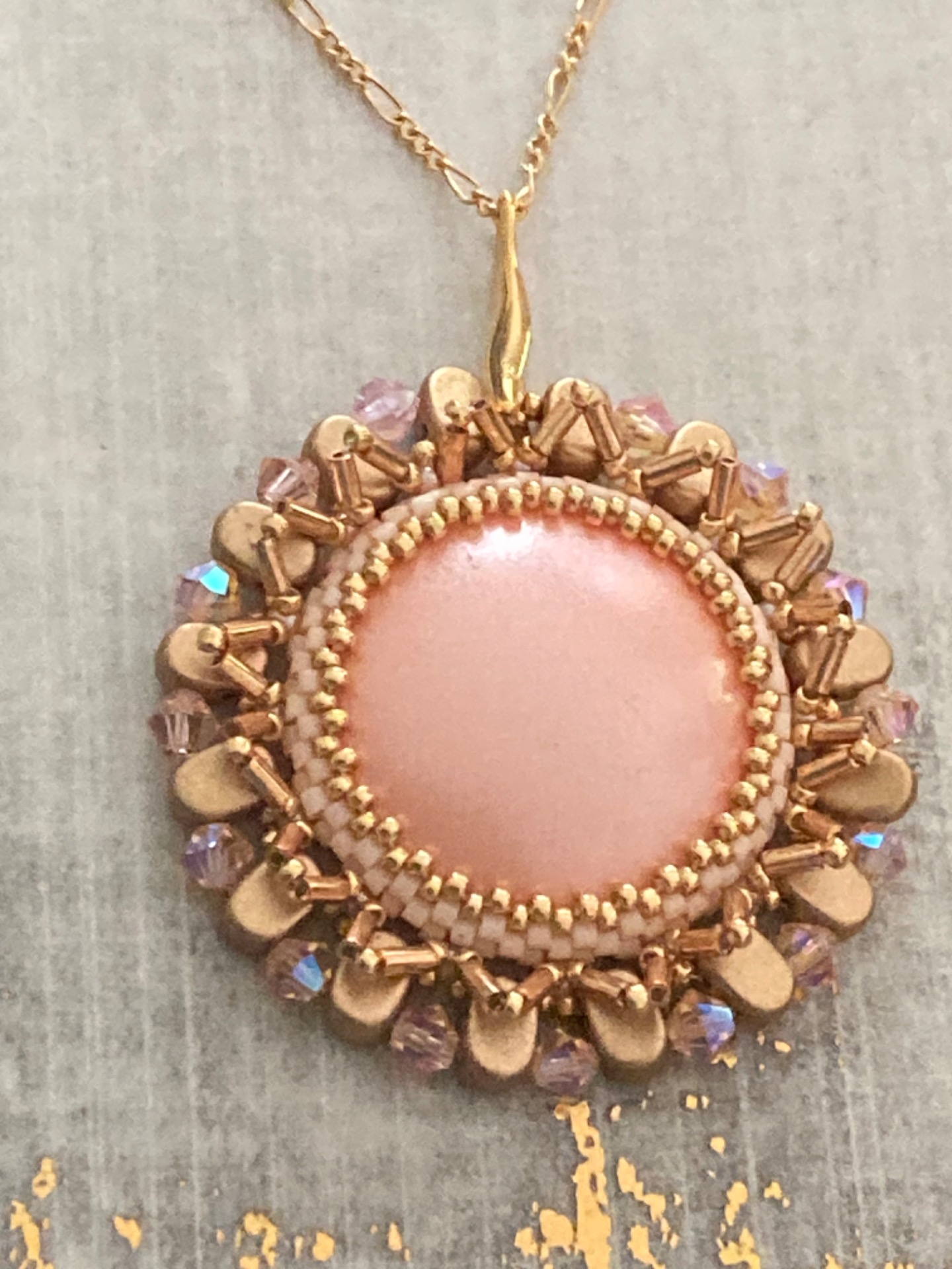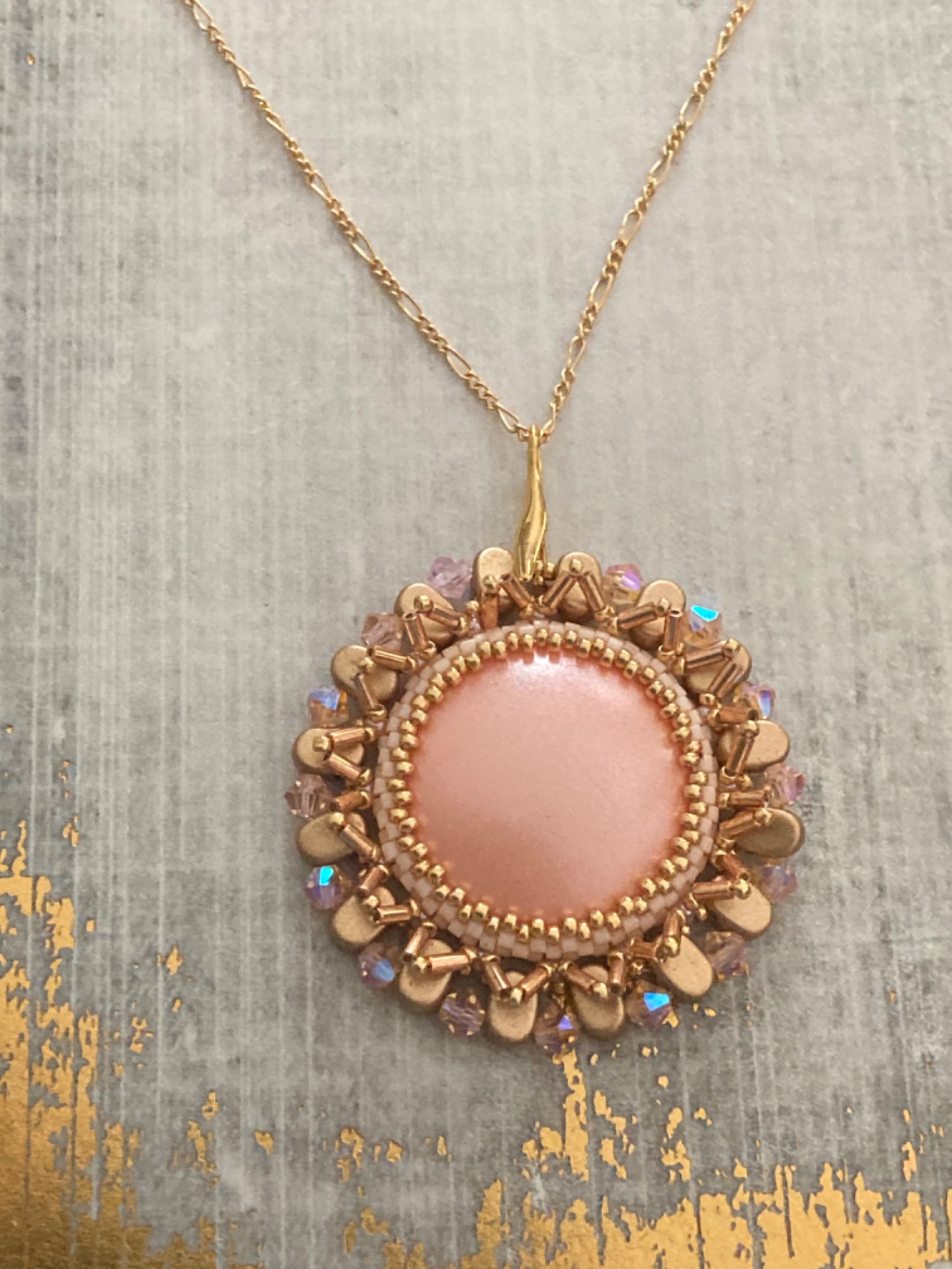 Gold filled (14k) ketting Hanger met cabochon par Puca 2,5 cm met rondom les perles par Puca en 15 Swarovski toupies.Ketting van 50 cm + 5 cm extensie