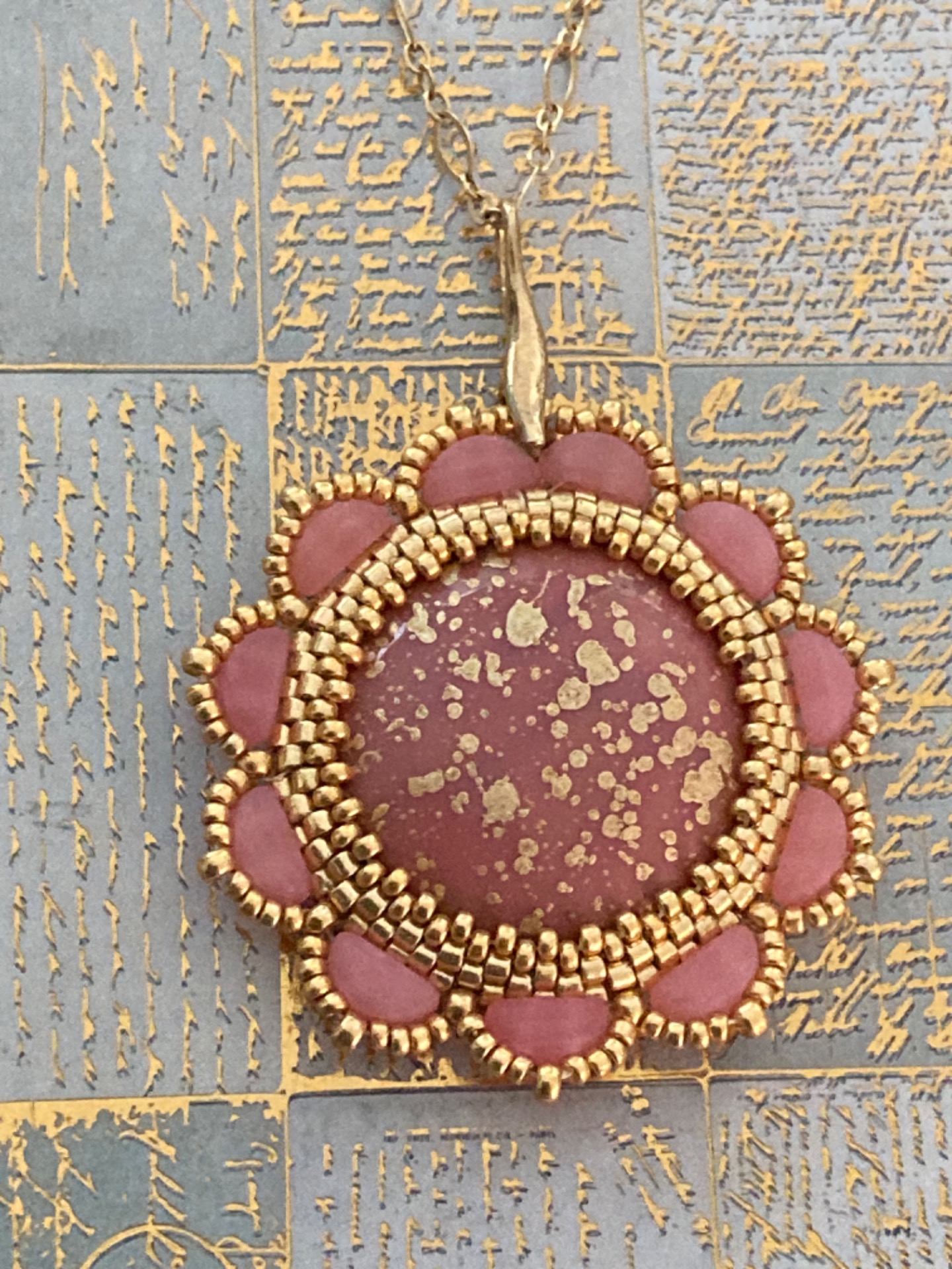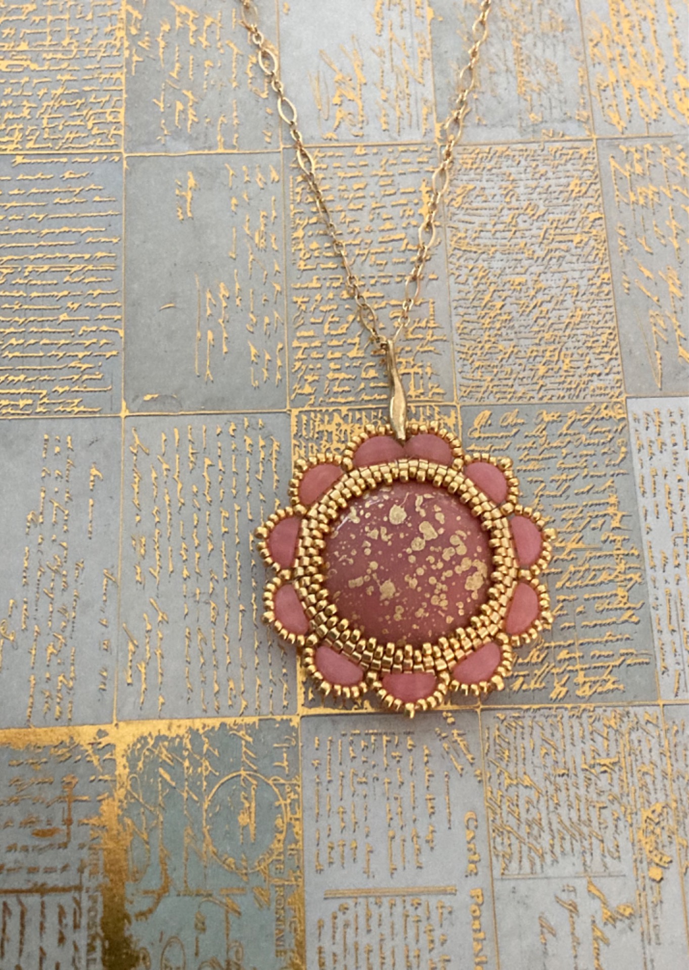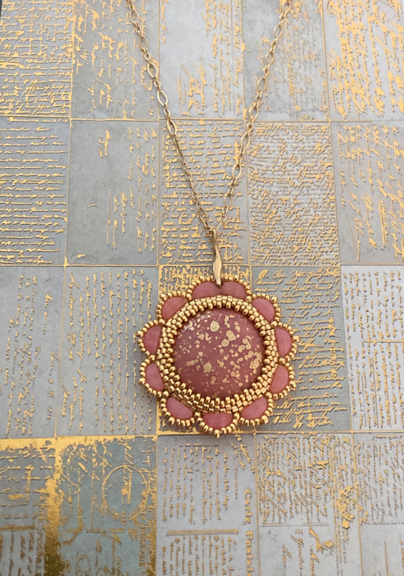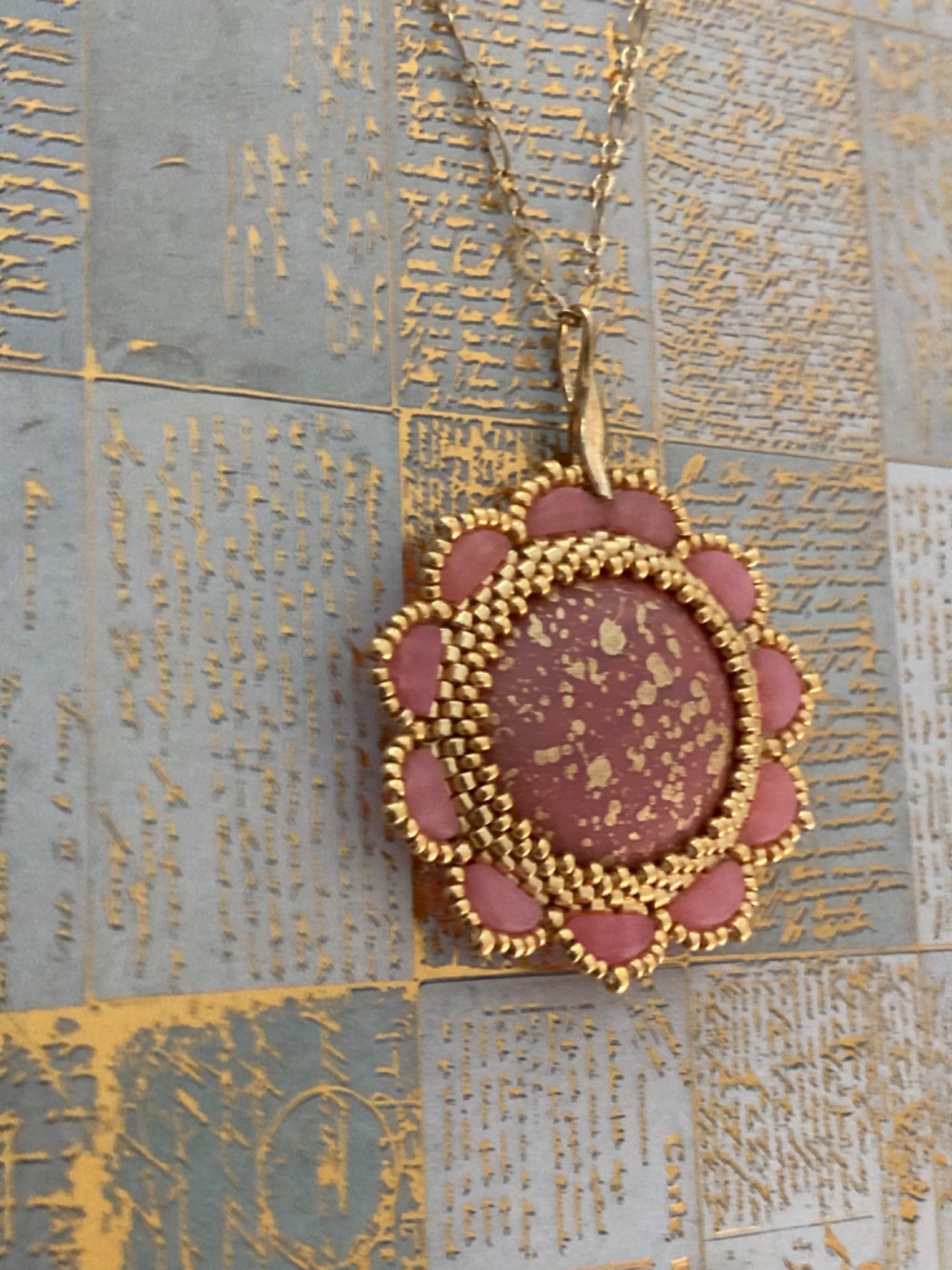 Gold filled (14k) halsketting met gold spatted cabochon par Puca - Paris.