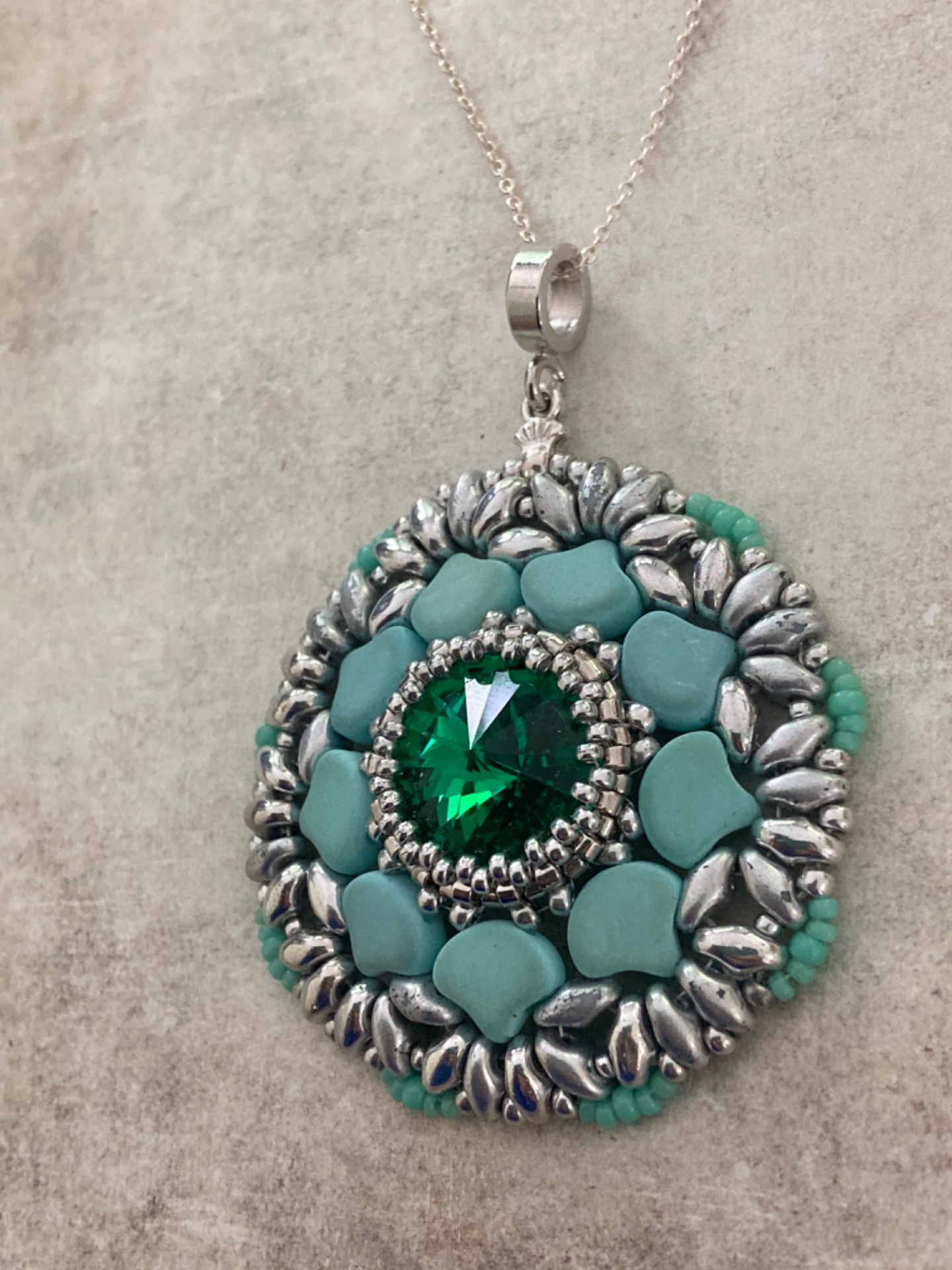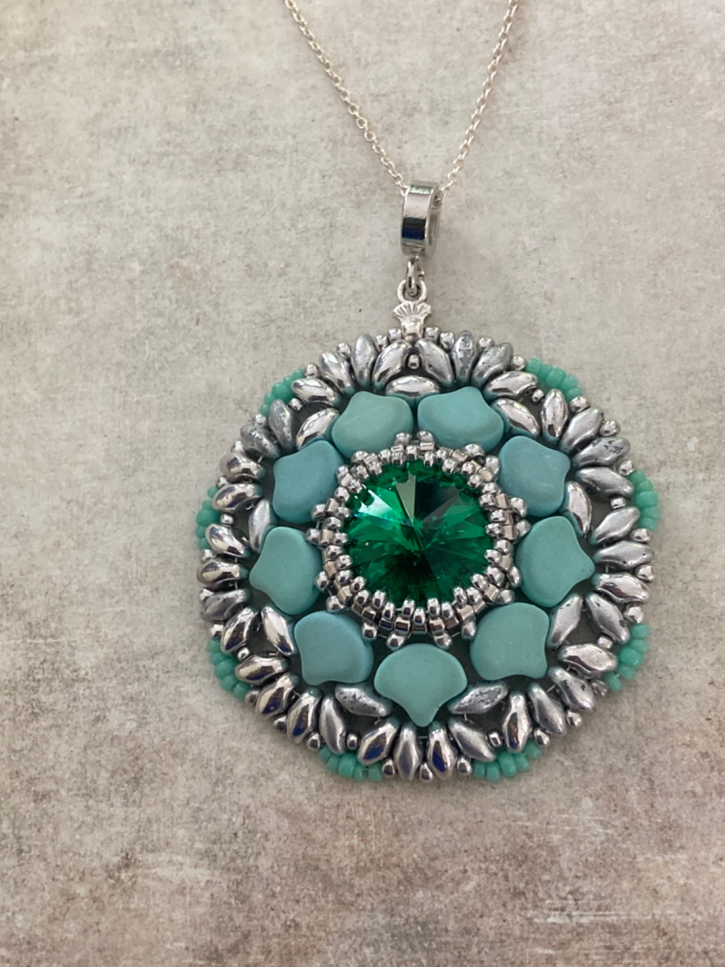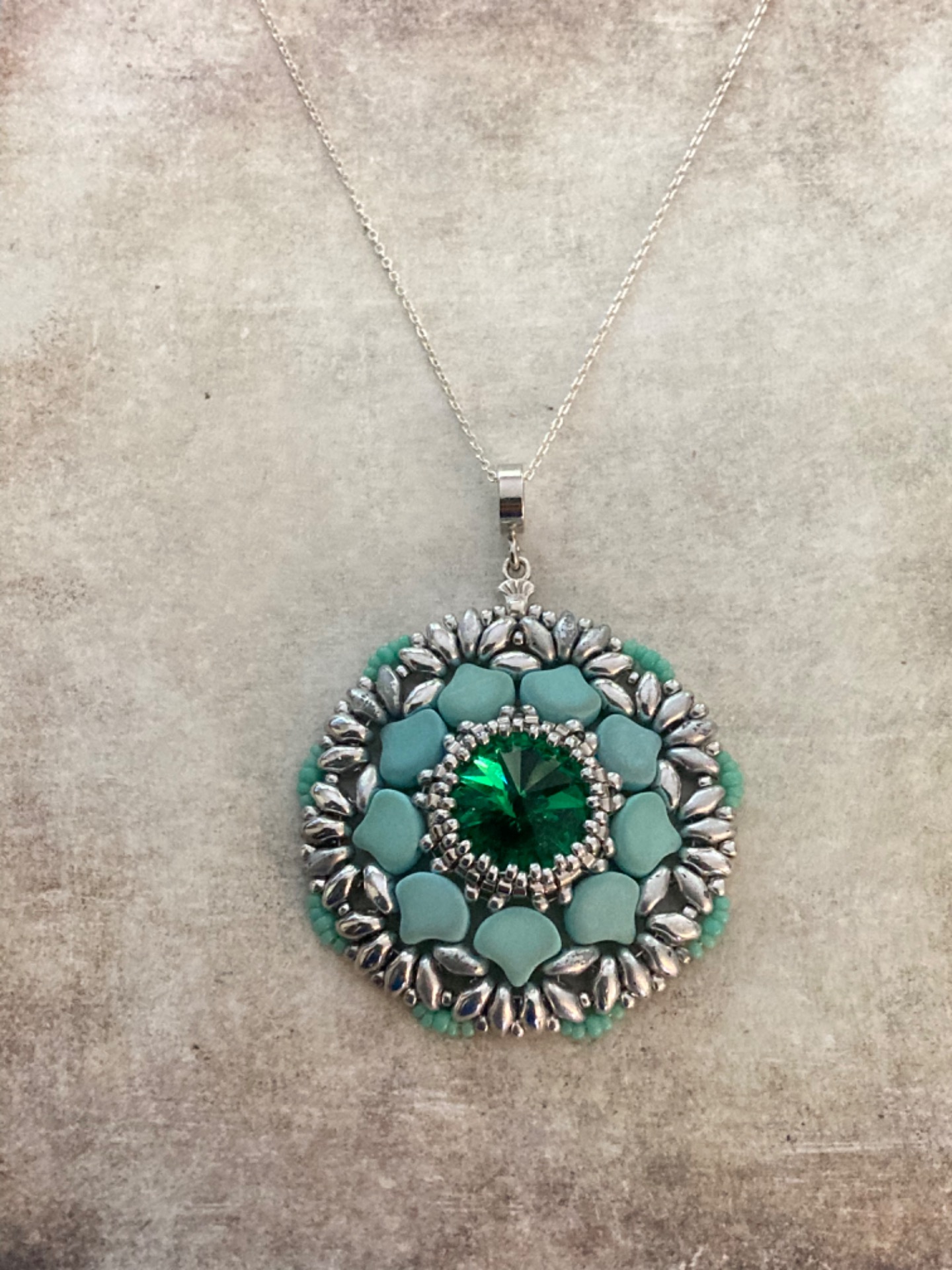 Hanger met tjechische kralen en Pure Crystal 14 mm.Afgewerkt met halskettingketting in Sterling silver 925.