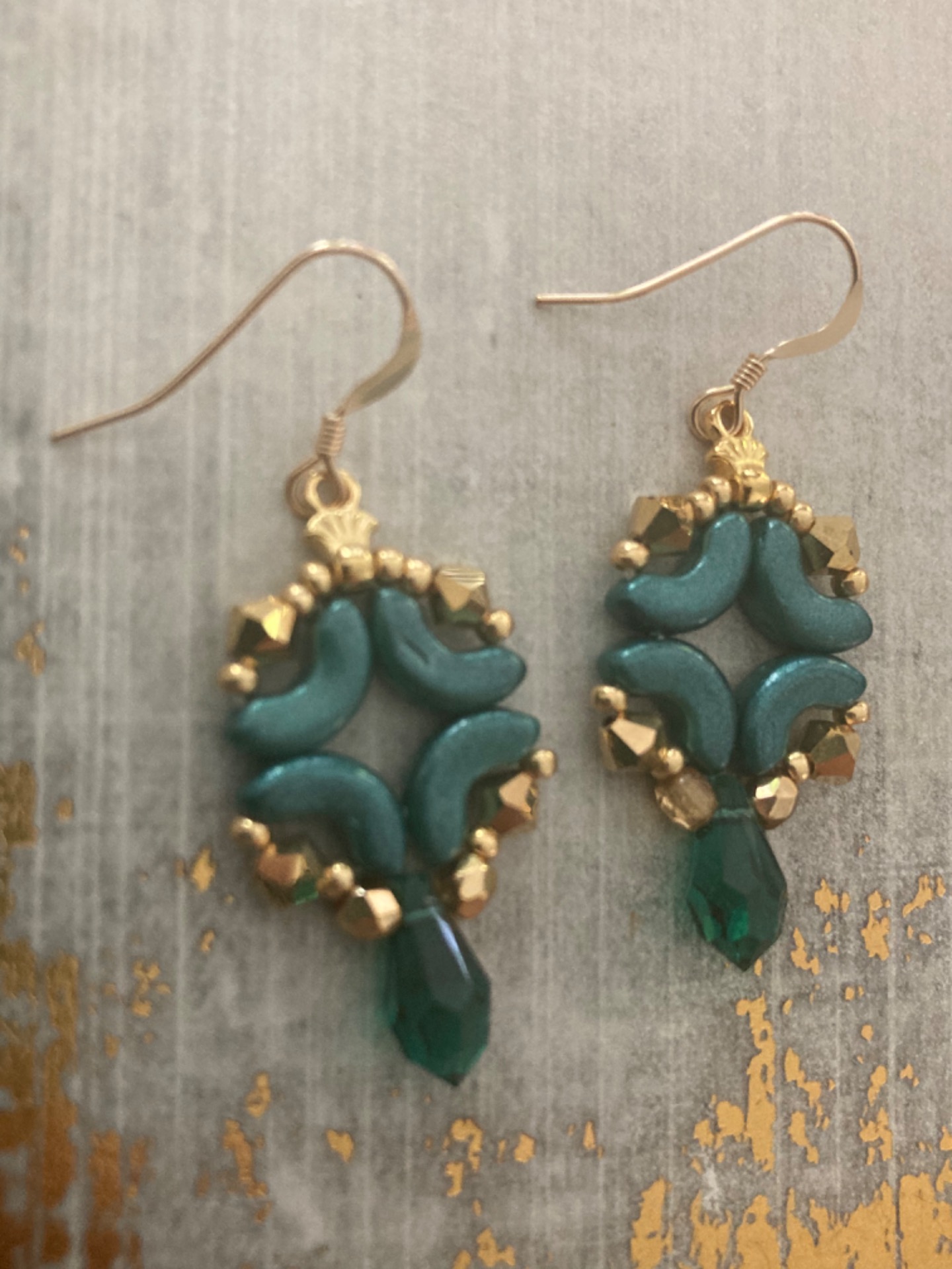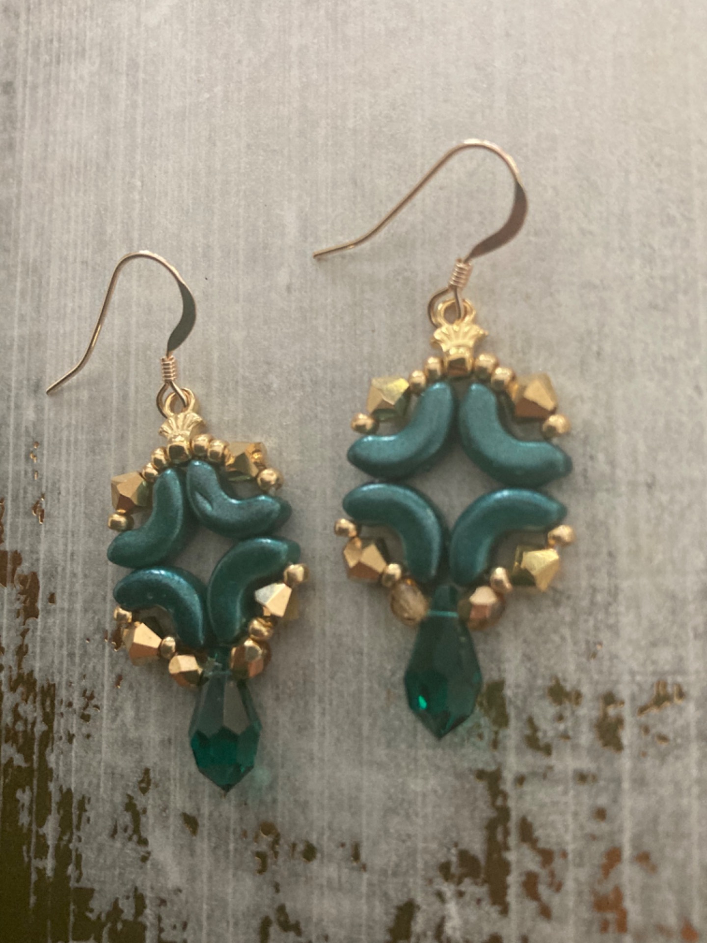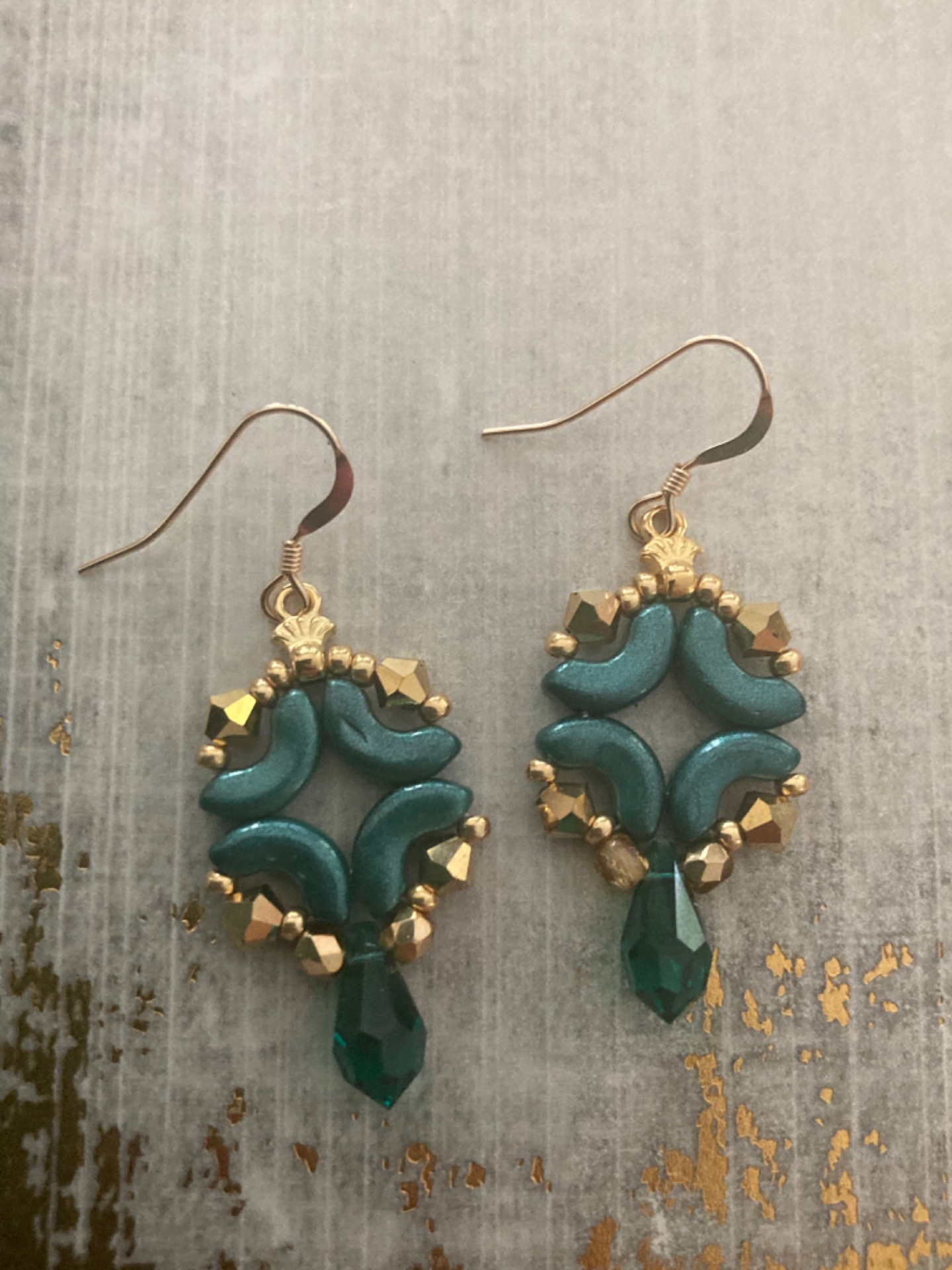 Gold filled (14k) oorbellen met les perles par Puca, facetkralen en Swarovski druppel van 1 cm.