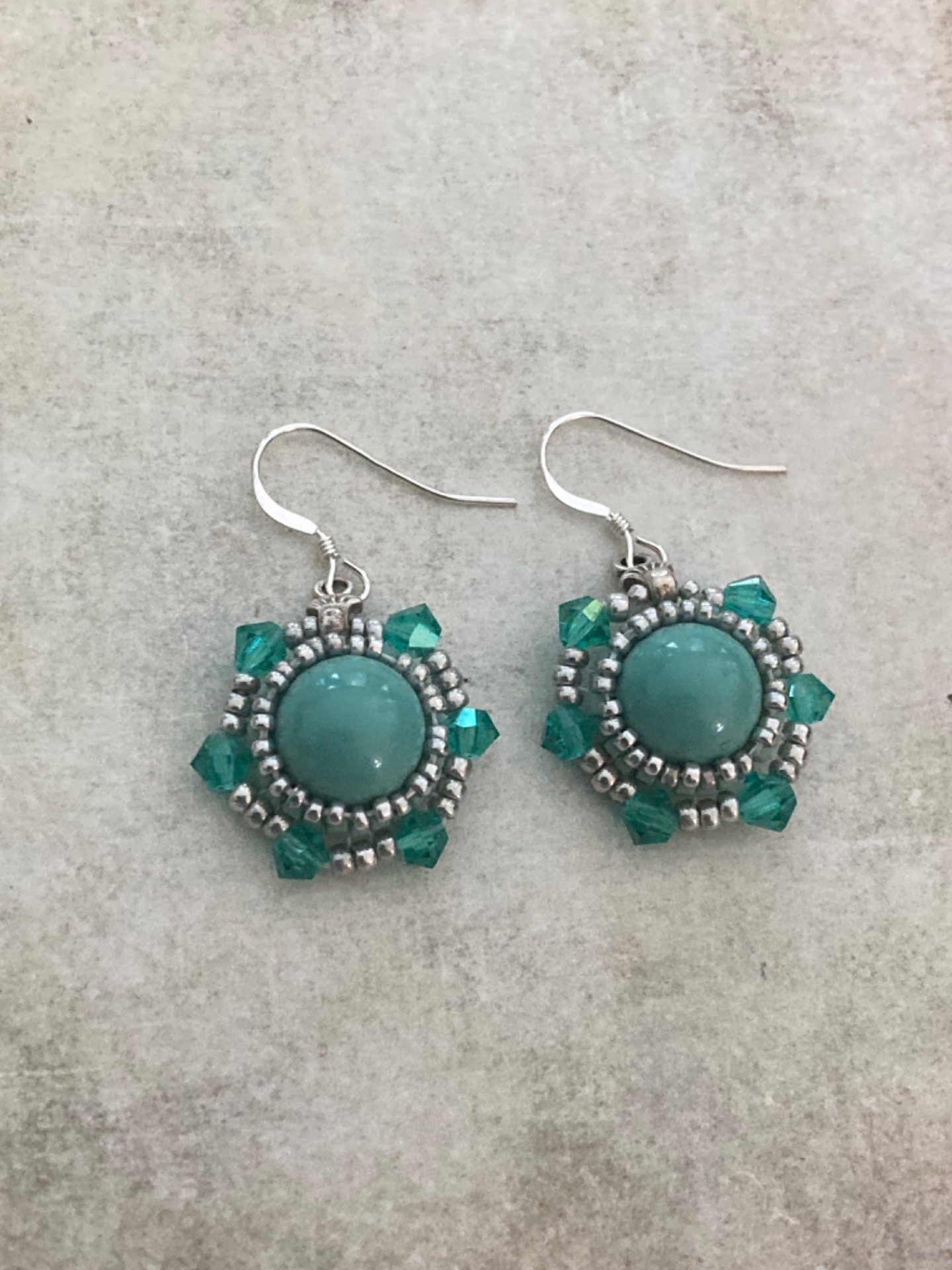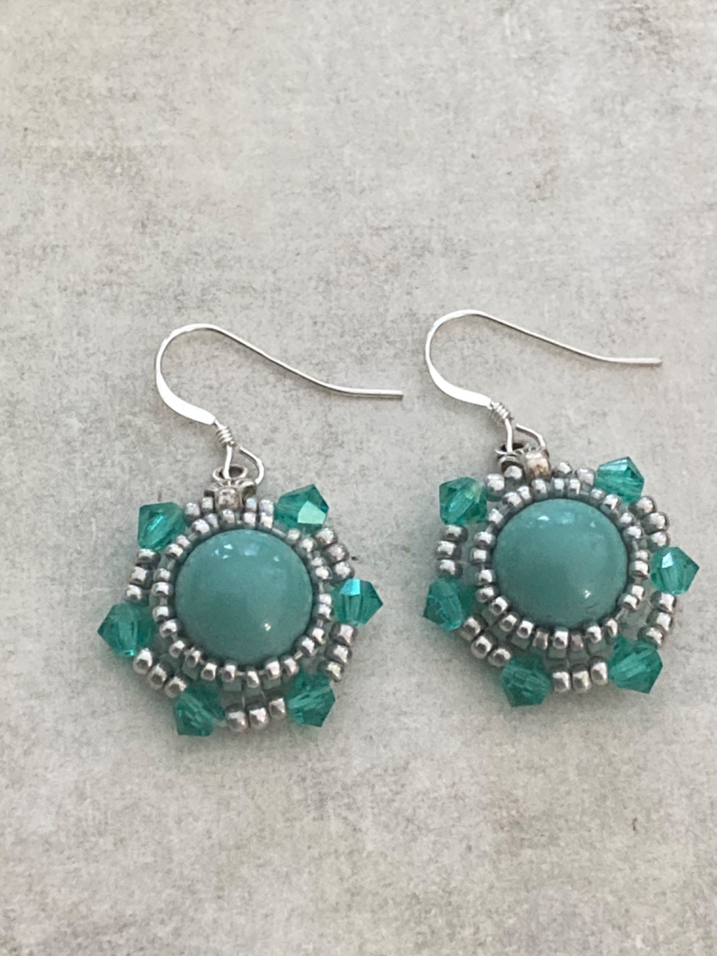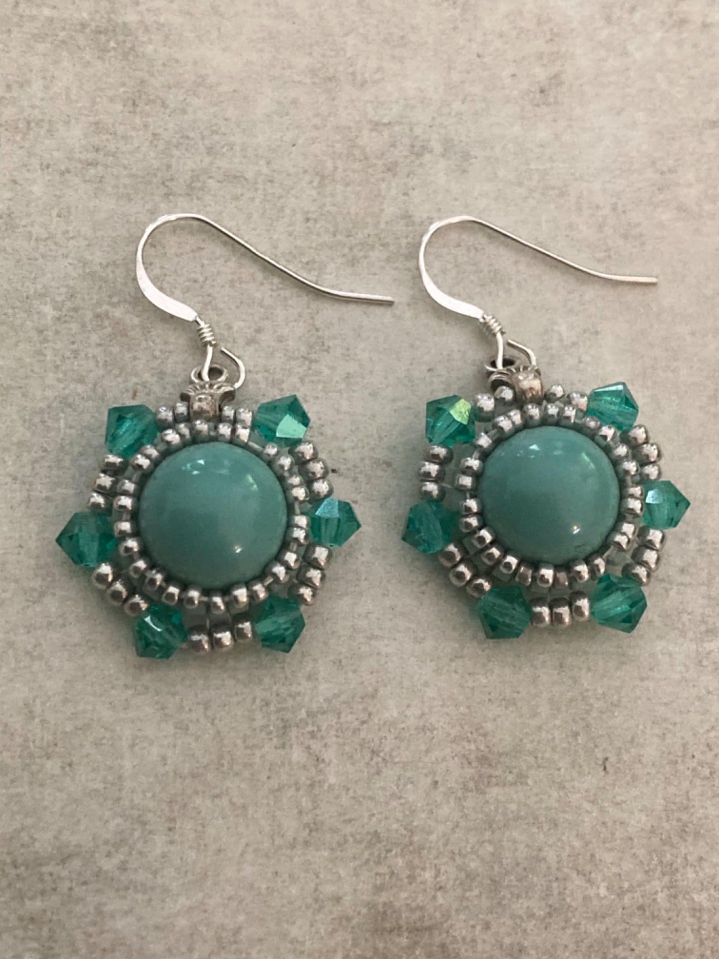 Zilveren oorbellen (925) met Swarovski kraal 10 mm en toupies van 4 mm.