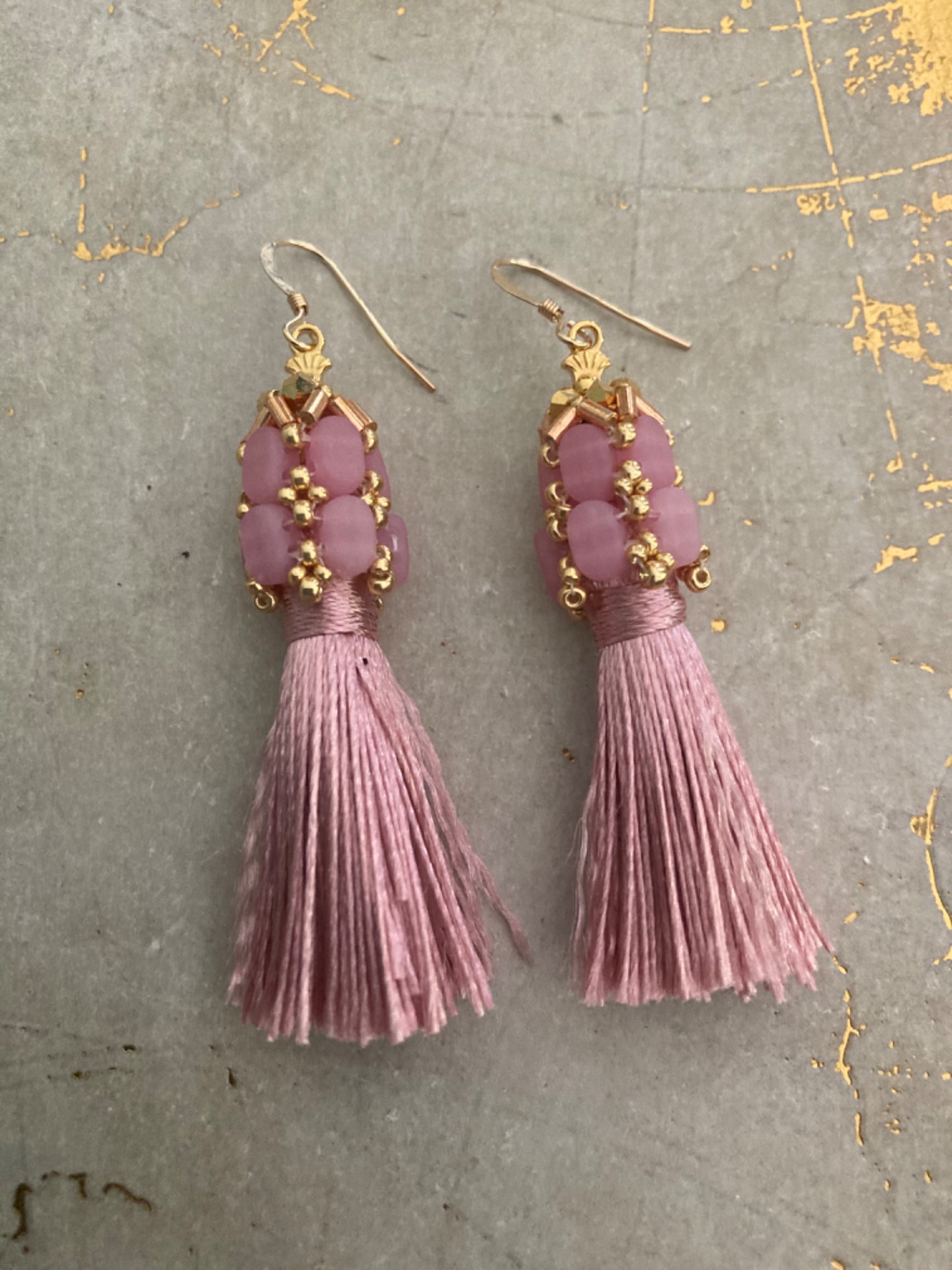 Gold filled (14k) oorbellen met Perles par Puca- Paris en kwastje.